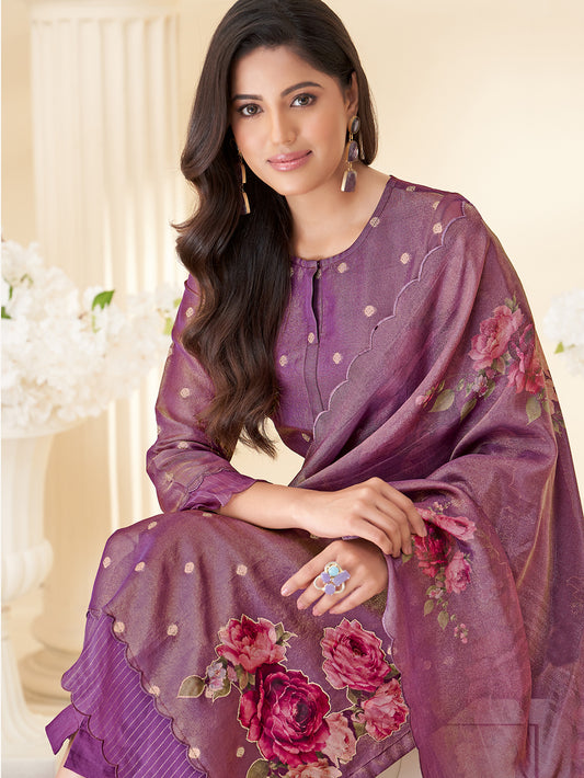 KASHVI Metallic violet - Simmer Suit Set With Handwork & Embroidery