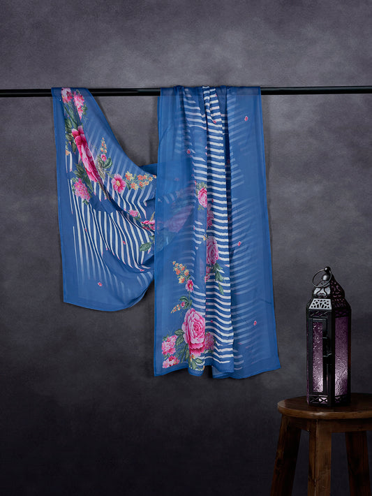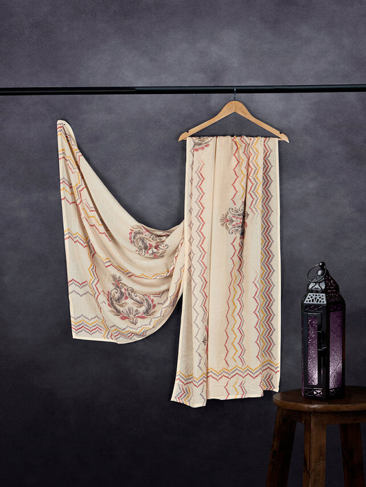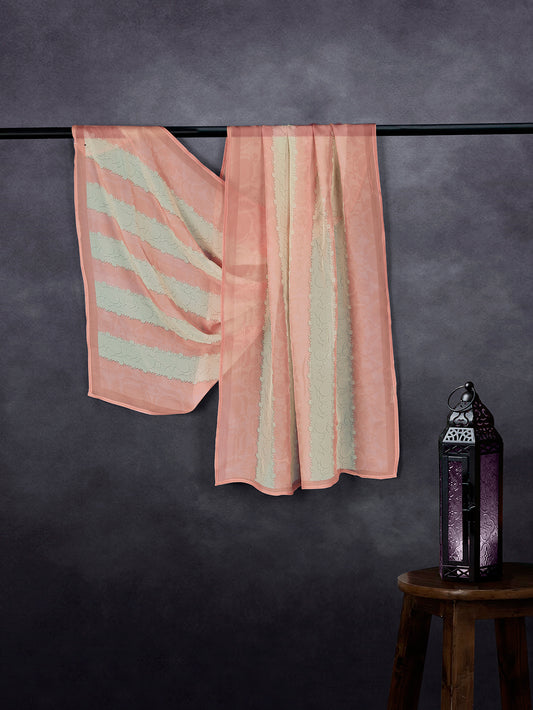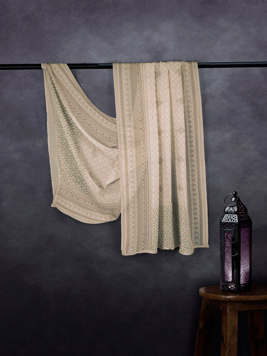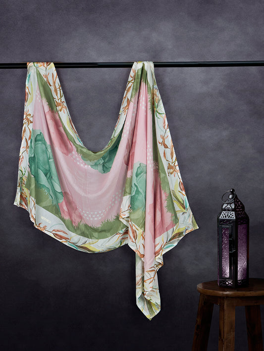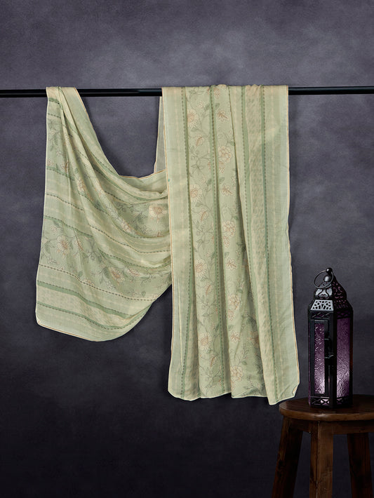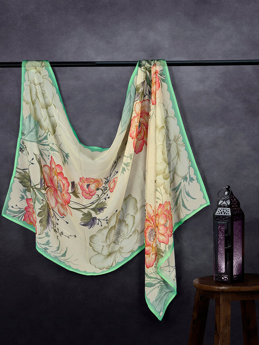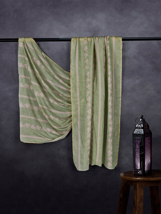Premium Cotton Muslin Base Dupatta White Gtreen