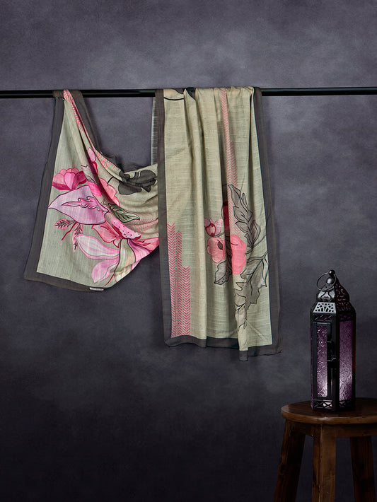 Premium Cotton Muslin Base Dupatta Dusty Green