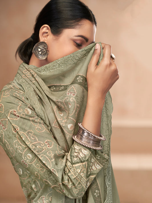 Vrinda Mehandi Elegant Cotton Suit Set with Intricate Handwork & Embroidery