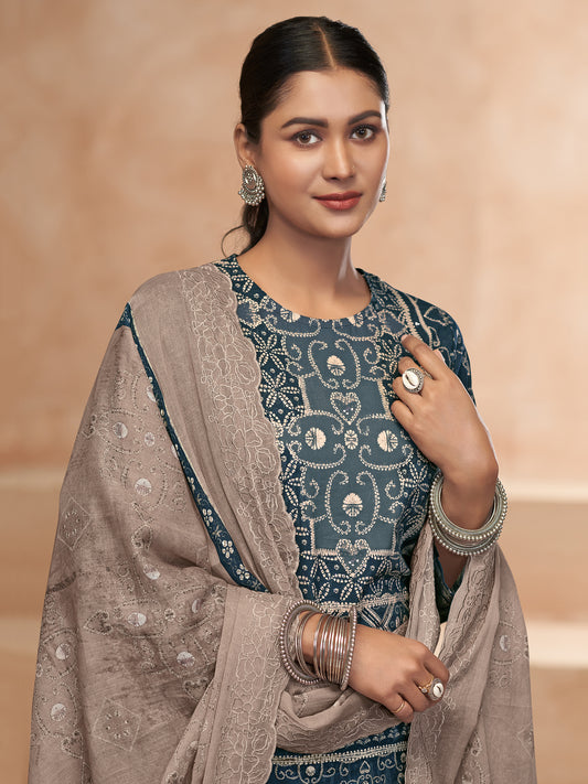 RIHALA Dark Firoji Martin Orgenza Suit Set With Hand work
