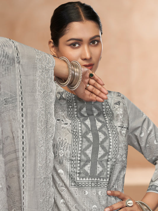 YASHLEEN GREY Pure Cotton Suit Set with Elegant Handwork