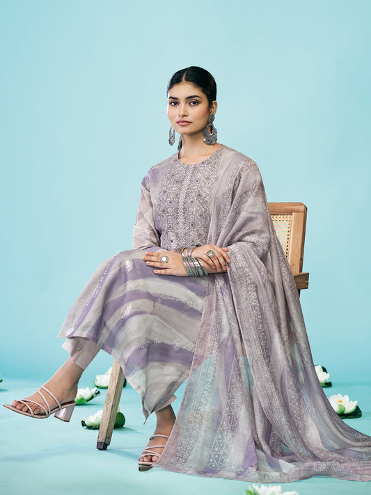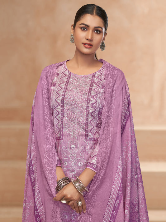 YASHLEEN LILAC Pure Cotton Suit Set with Elegant Handwork