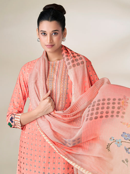 SHWET PEACH Pure Cotton Suit Set with Handwork Elegance