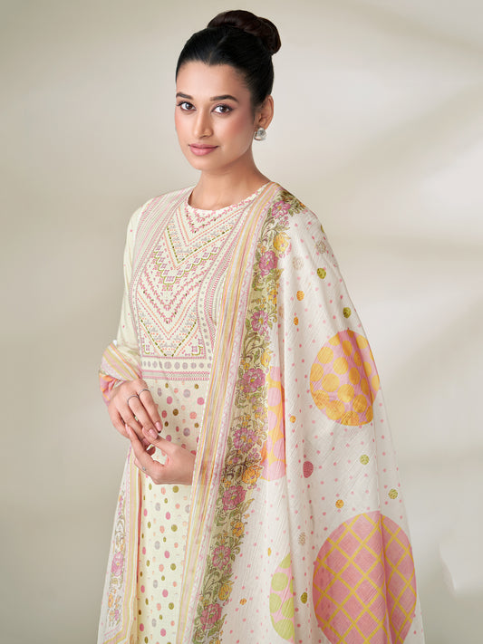 SHWET LIGHT CREAM Pure Cotton Suit Set with Handwork Elegance