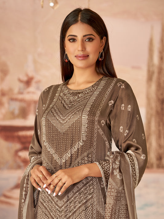 Pragya Brown Elegance Pure Cotton Suit Set with Handcrafted Details