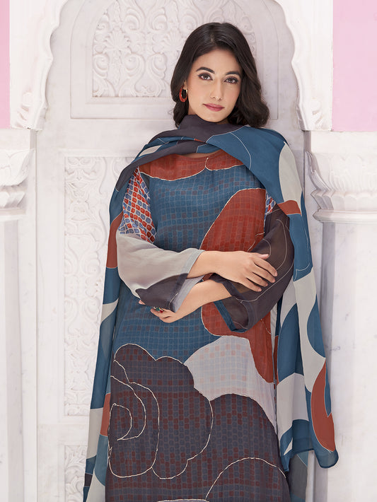 BRINDA Blue - Russian Suit Set With Attractive Handwork