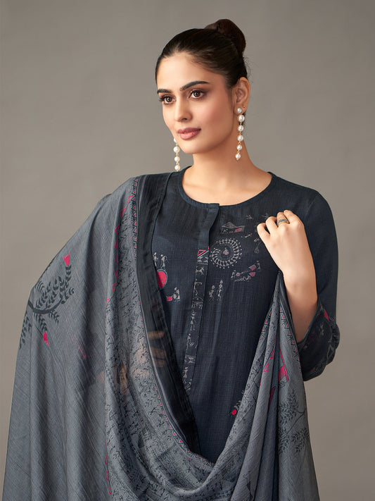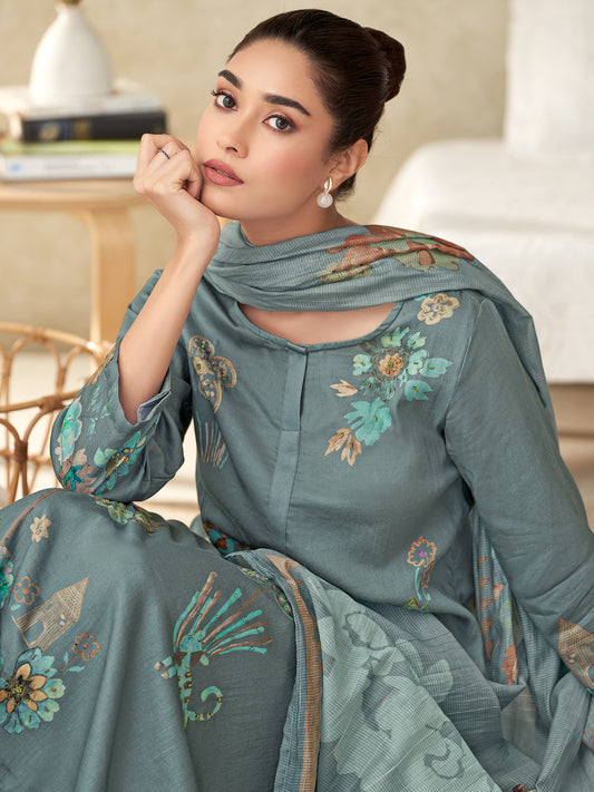 YASHLEEN GREY Pure Cotton Unstitched Set with Elegant Handwork