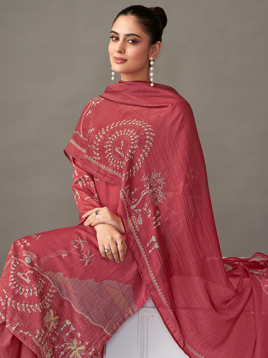Nazara Handcrafted Pure Muslin Silk Kurta Unstitched Set with Dupatta