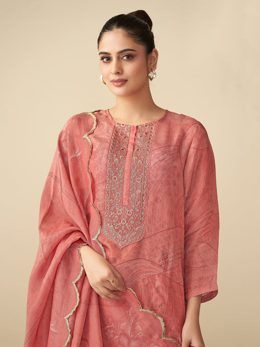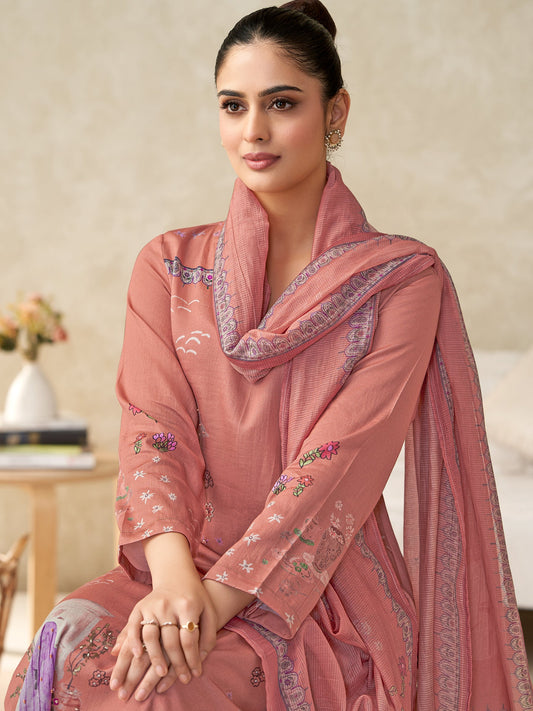 SHWET PEACH Pure Cotton Unstitched Set with Handwork Elegance