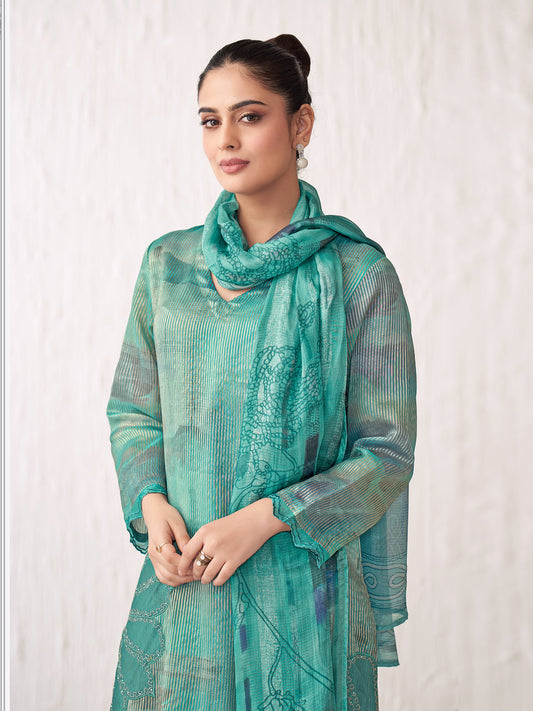 Ramya Luxe Simmer Tissue Kurta Unstitched Set with Dupatta