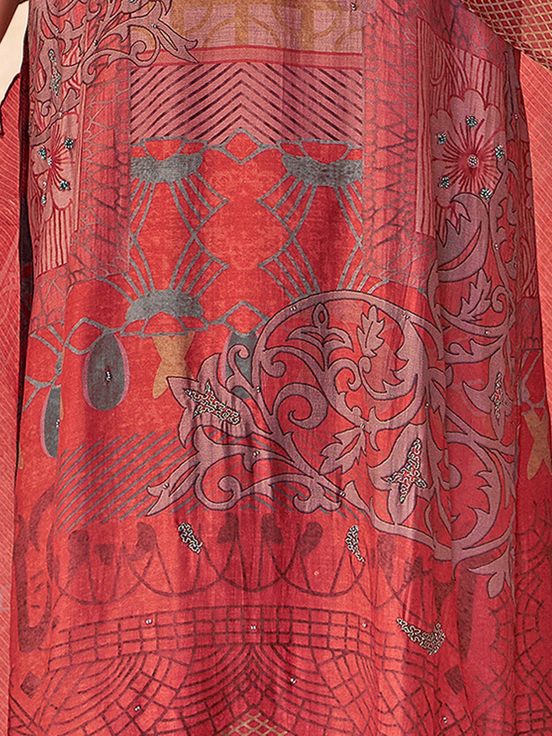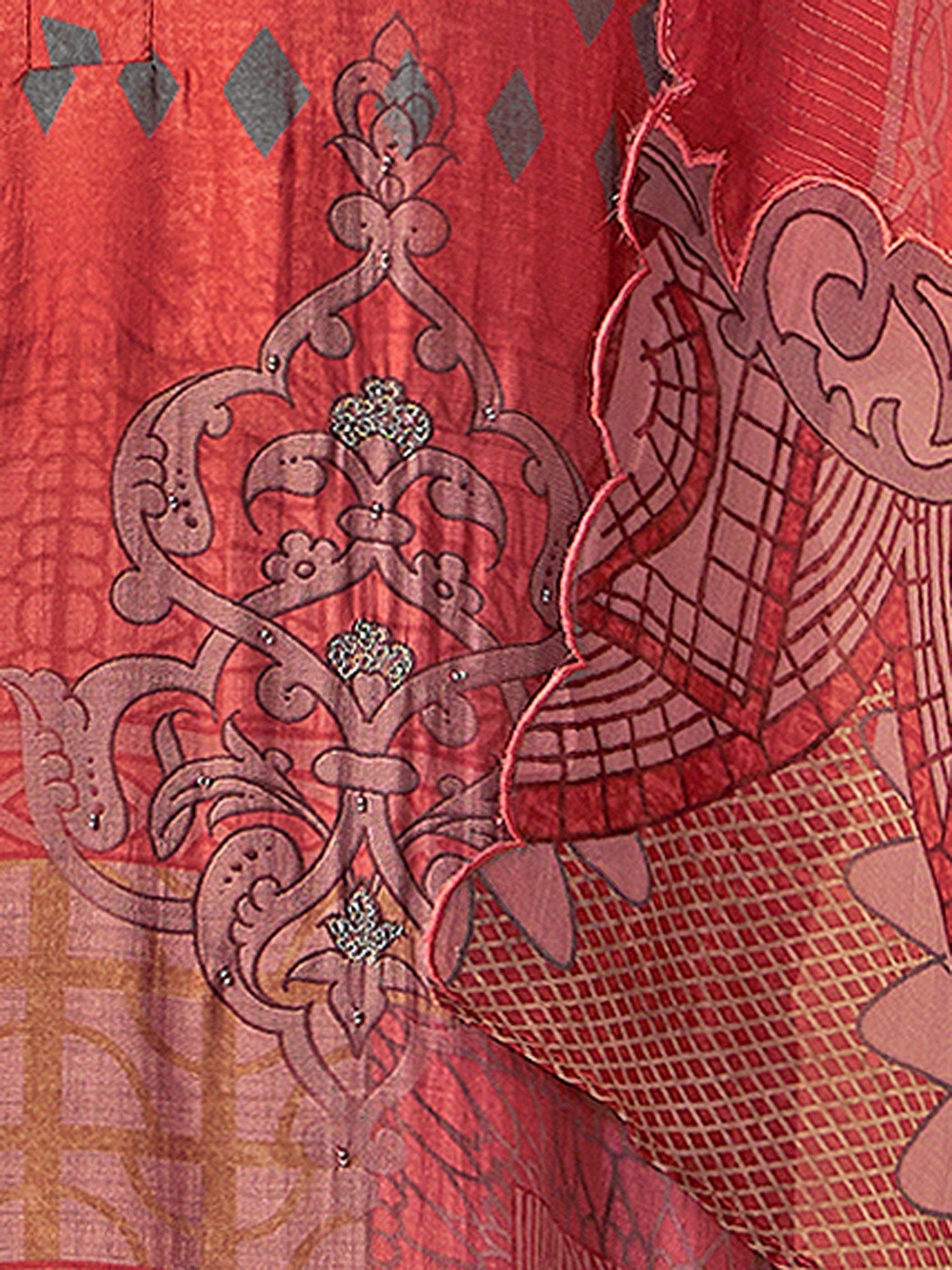 Top:-Pure Muslin Silk ; Bottom:-Mulberry Satin; Dupatta:-Muslin Jari Lining Digital Print; Arka Embroidery, Threadle & Patch Work; Handwork Details; Top with attractive Handwork;