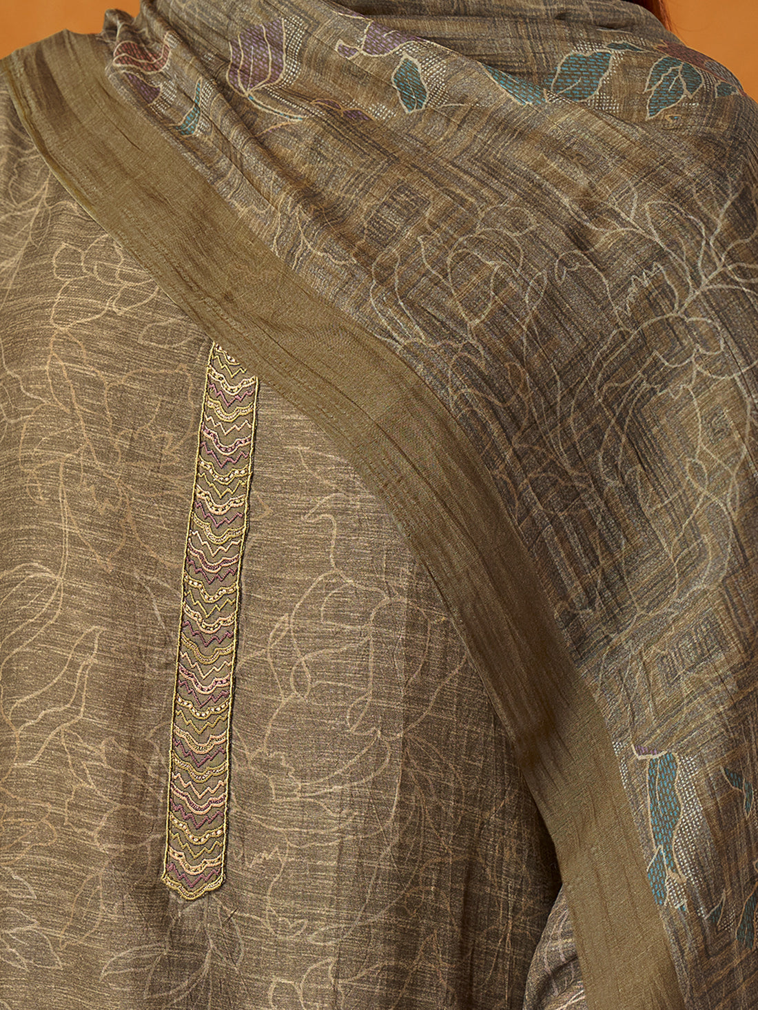AAROHI Dark chikoo - Muslin Suit Set With Handwork & Embroidery