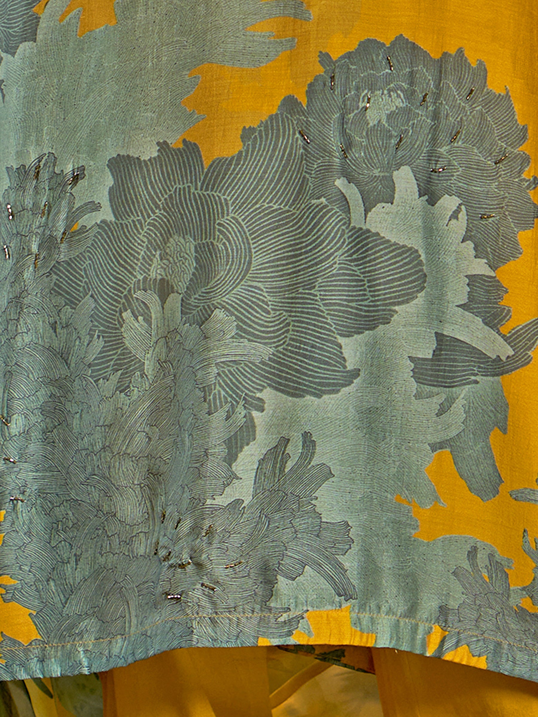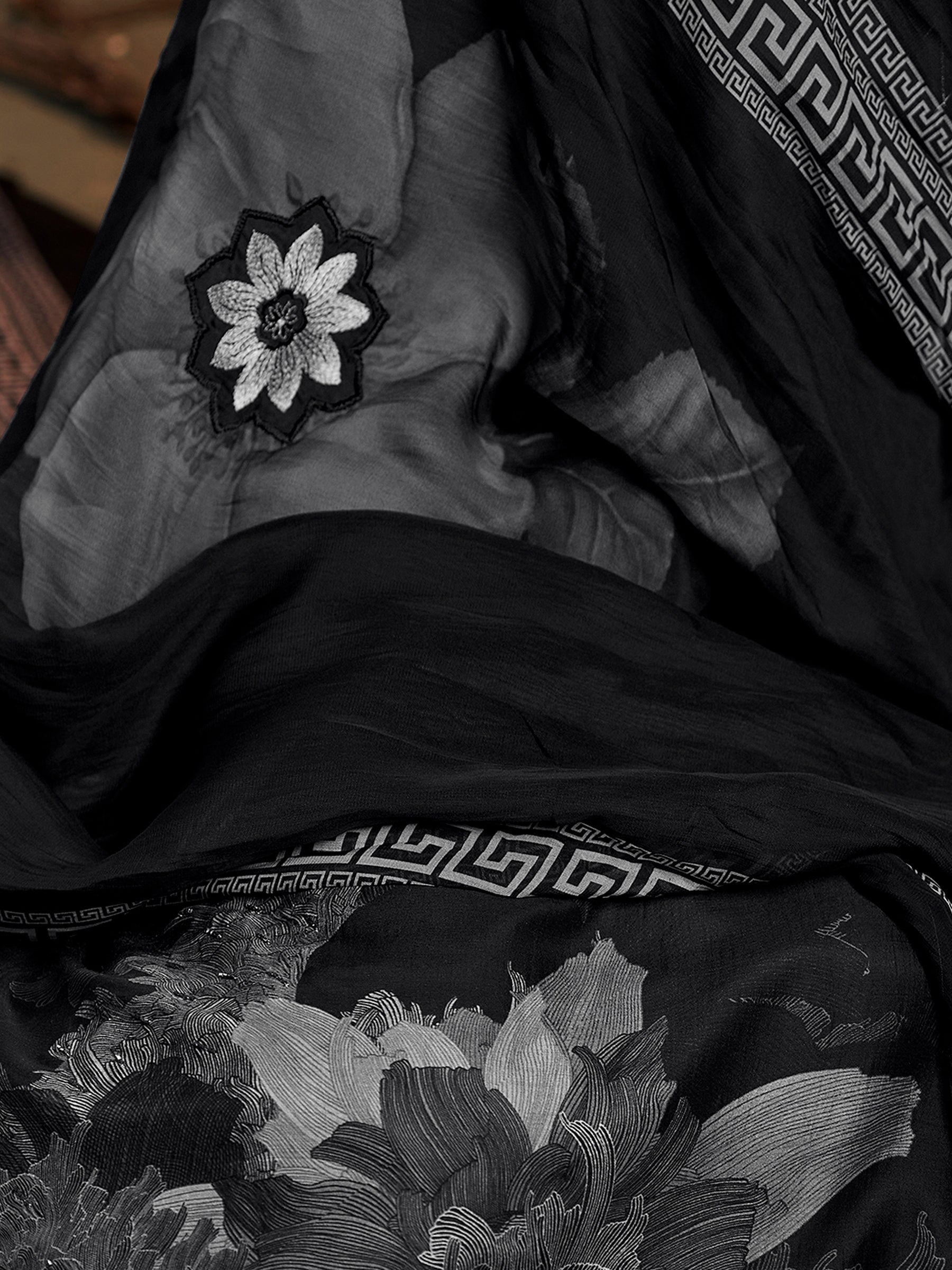 Top:-Pure Muslin Silk With Mal Inner; Bottom:-Pure Mulberry Satin; Dupatta:-Pure Orgenza Silk Digital Print With Arka Embroidery Butta & Thredal Work ; Handwork Details; Top with attractive Handwork & Neck Embroidery Patti;
