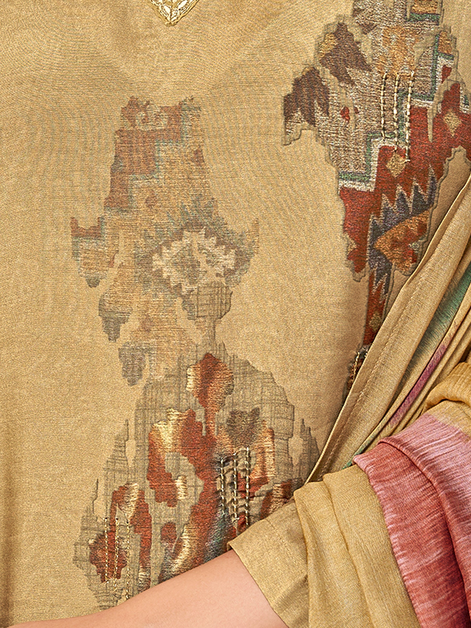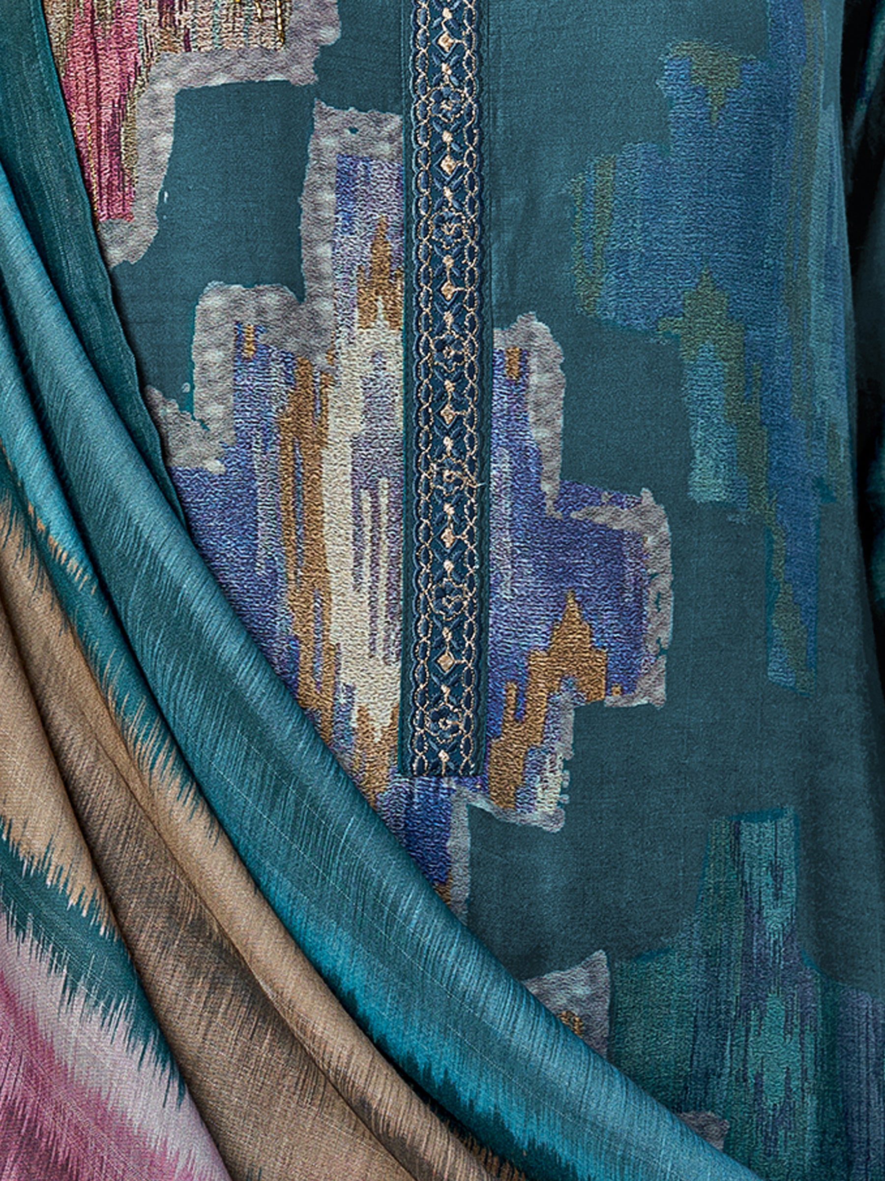 Top:-Pure Muslin Silk With Mal Inner; Bottom:-Pure Mulberry Satin With Embroidery Plazzo; Dupatta:-Pure Silk Fancy Stripe Digital Print; Handwork Details; Top with attractive Embroidery Daman Tredal Patch & Silk Embroidery Plaket Handwork;