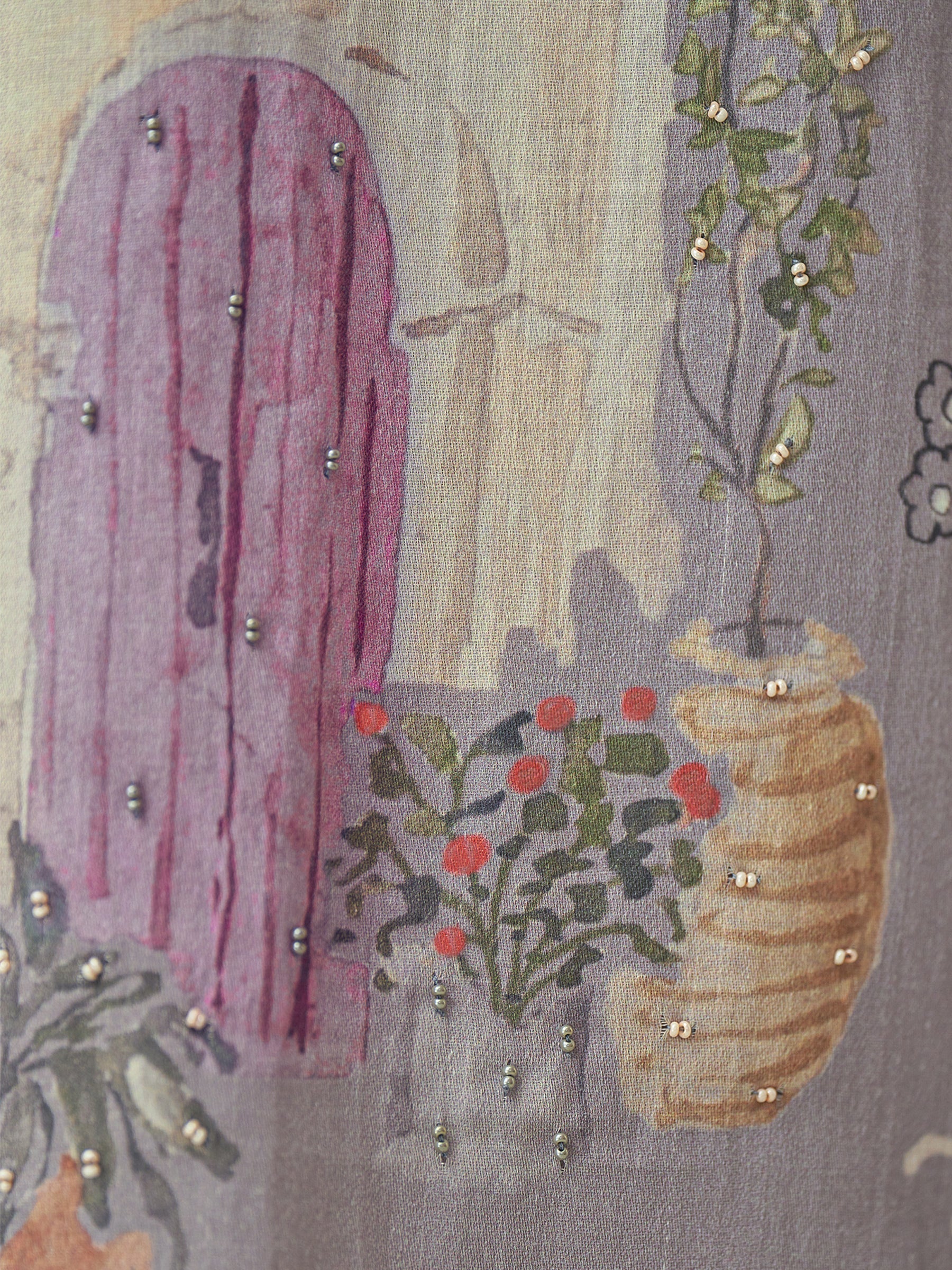 Top:-Pure Italian Satin Lawn; Bottom:-Italian Satin; Dupatta:-Fancy Jari Lining Digital Print; Handwork Details; Top with attractive Handwork;