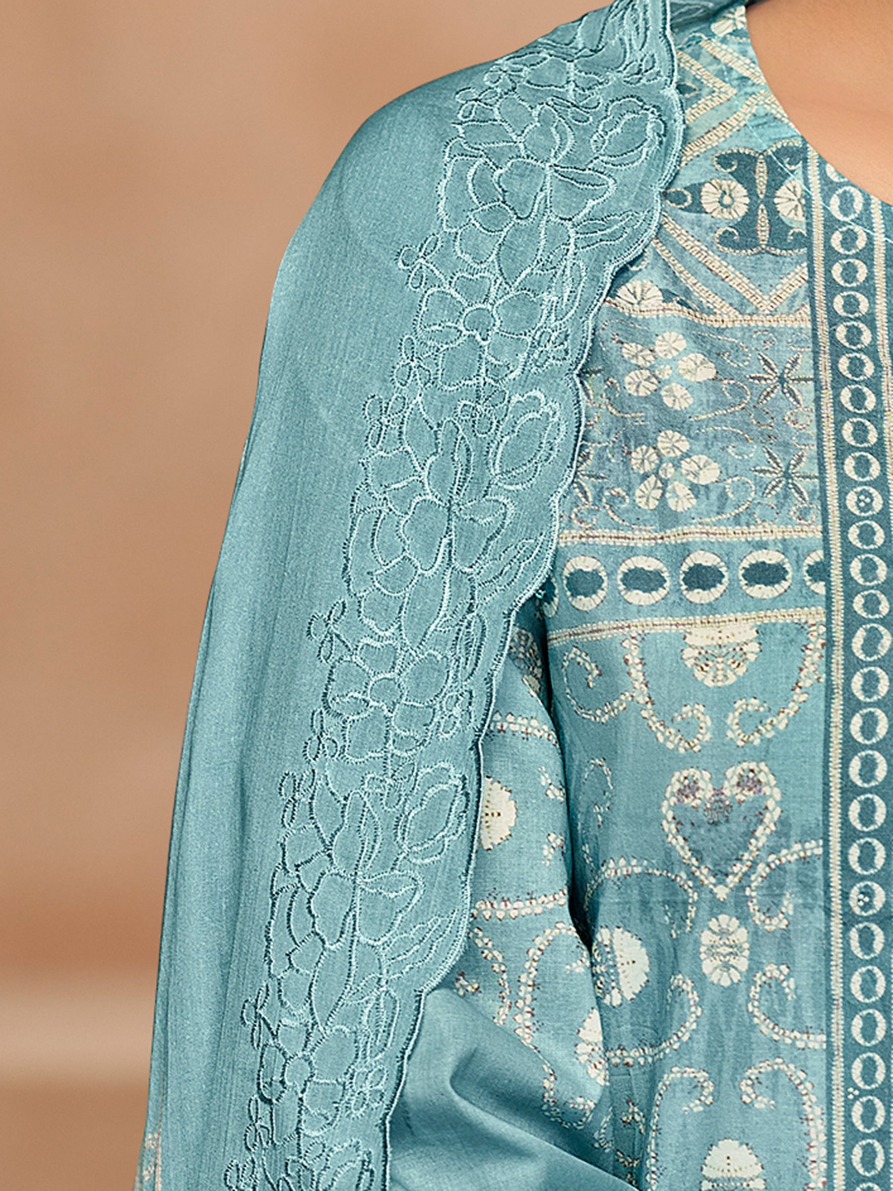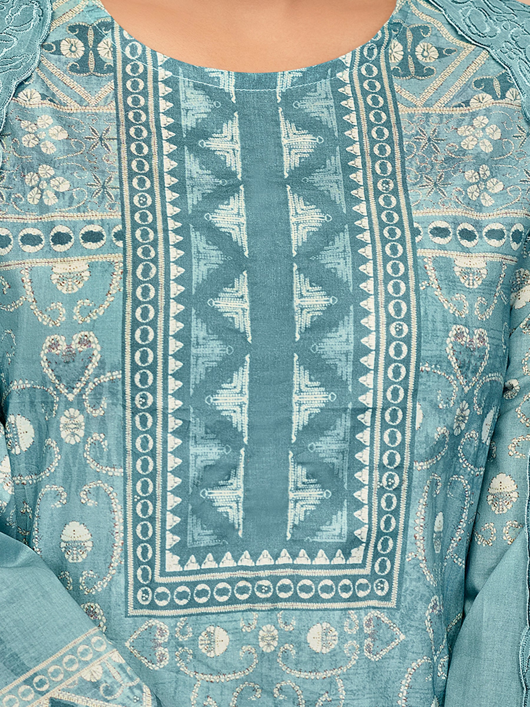 Top:-Pure Cotton; Bottom:-Pure Cotton; Dupatta:-Pure Cotton Digital Print With Embroidery & cut Works; Handwork details; Top with attractive Handwork;